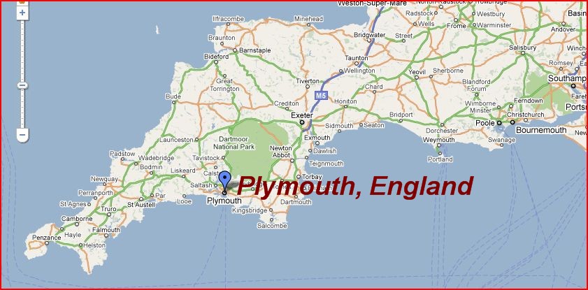 Location of Plymouth, England