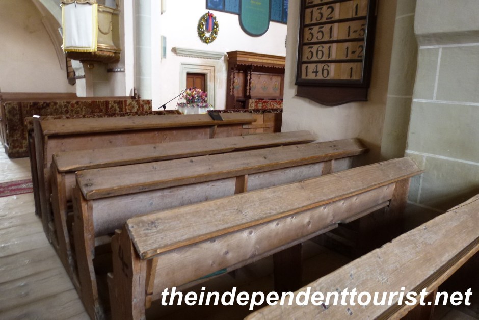 Harman Fortified Church_Harman Romania (11) ← Previous Next → The men would sit in these side pews to protect the women.