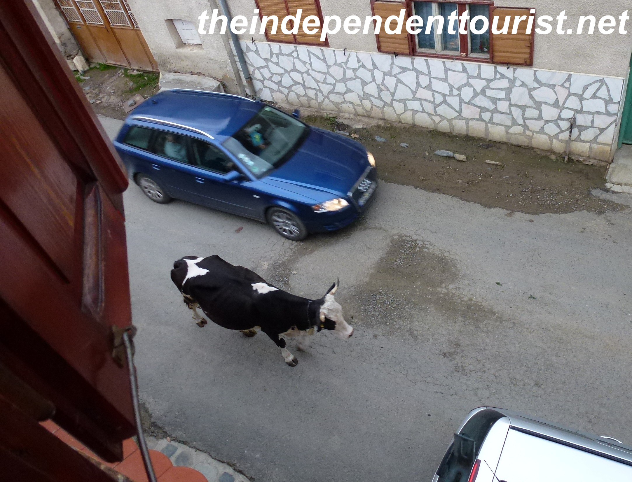 Guest House Rustic_Sibiu Romania (1) ← Previous Next → The cows coming home on the village street below our pension.