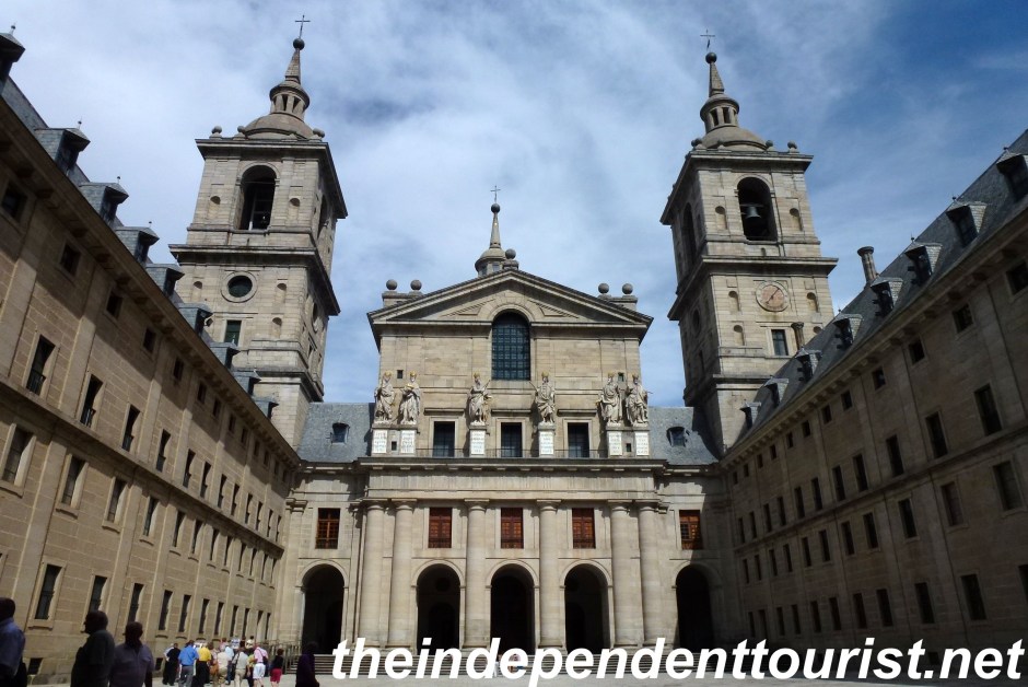 The Monastery of San Lorenzo de El Escorial_Spain (15) ← Previous Next → The entrance to the huge basilica from the inner courtyard at El Escorial.