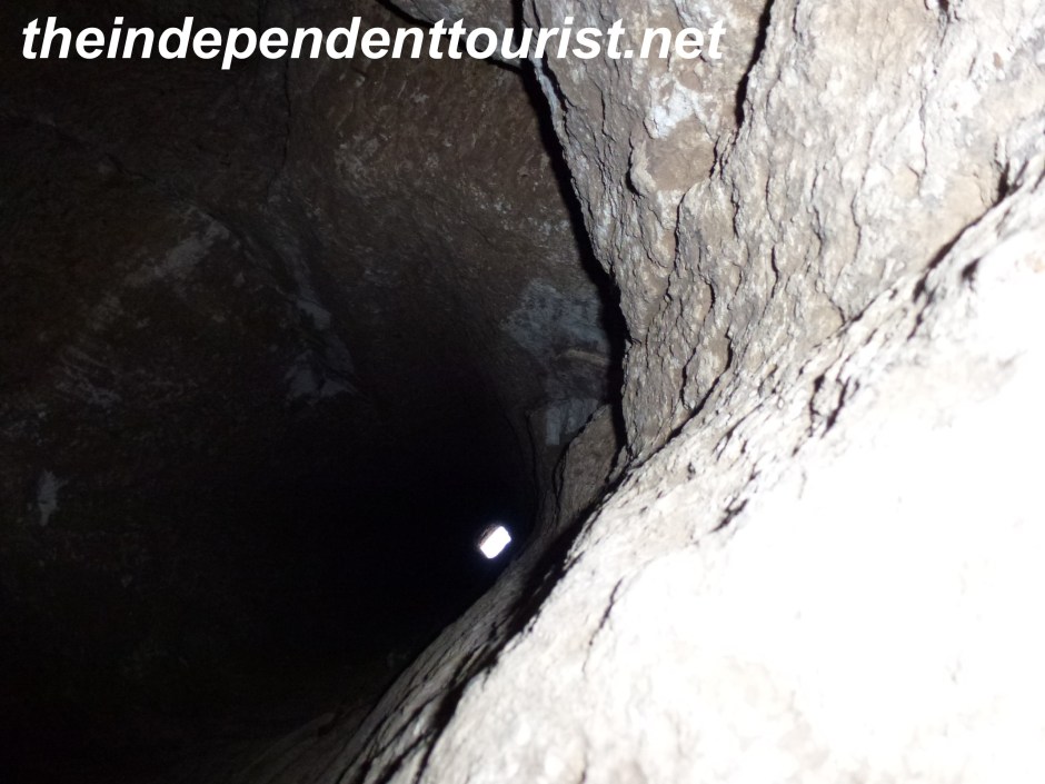 Derinkuyu Underground City_Turkey (20) ← Previous Next → Although a little hard to see, this is looking up through an air shaft over two hundred feet up – the little light spot in the lower center of the picture is the opening at ground level.