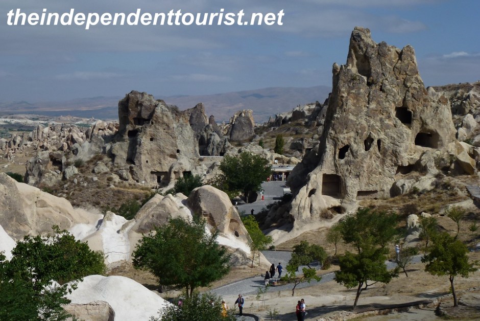 Goreme Open Air Museum_Turkey ← Previous Next → A view of the Gorme Open Air Museum–a path winds among the rock formations and rock-cut churches and other rooms.