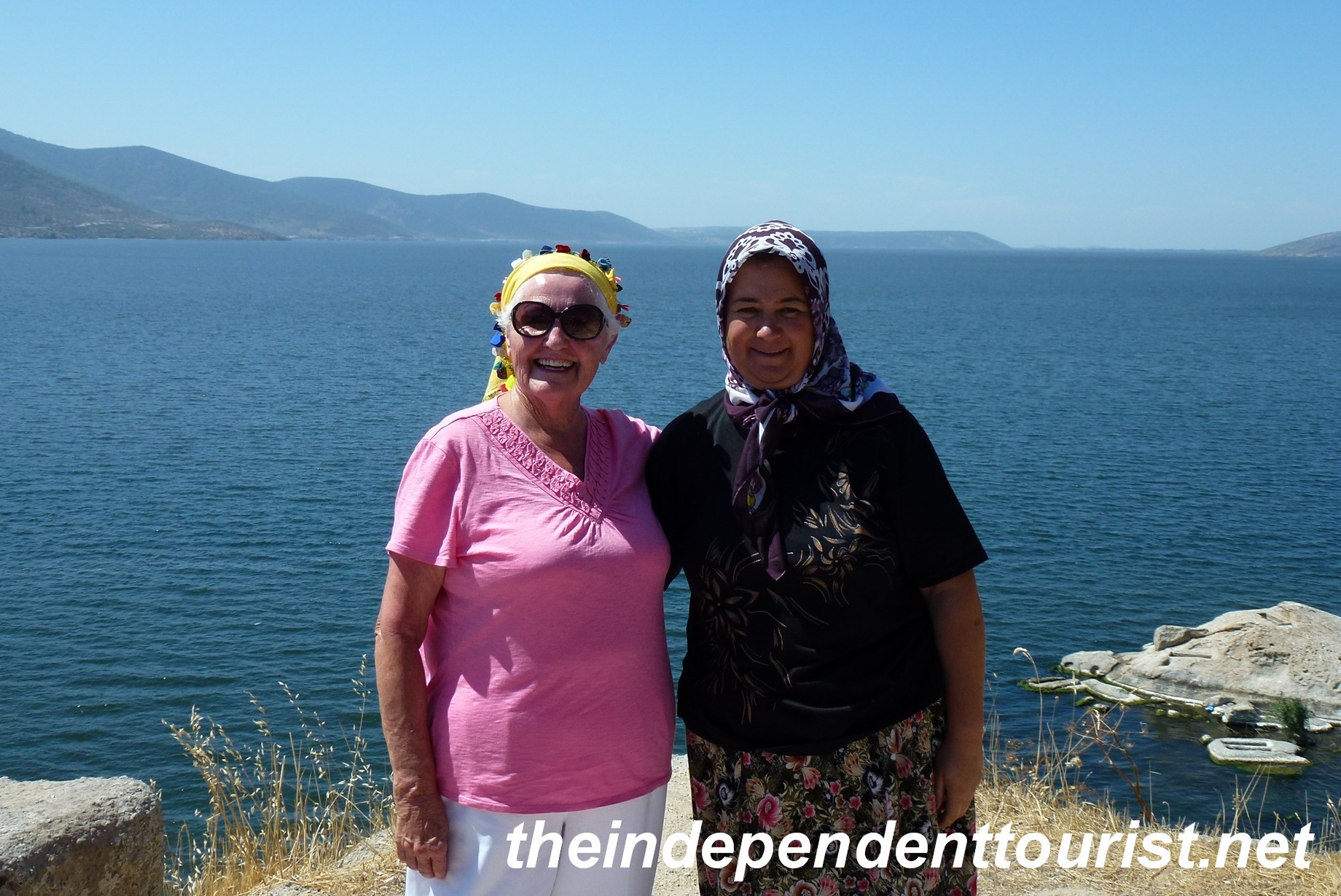 My mother-in-law modeling a head scarf with a local woman who spoke just a tiny bit of English and pointed out some of the sights for us.