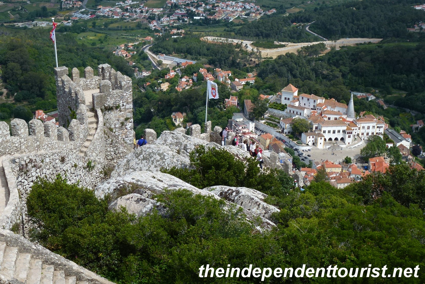 The sights are relatively close to one another; however Sintra is hilly and even after you arrive at a site by bus or taxi, there are some steep walks in front of you, at least up to and through the Castle ruins and around Pena Palace. Bus 434 will take you from the train station to Pena Palace. If you enjoy walking, take the bus up to Pena and walk back down to the town. You can get individual or combination tickets for the various sights. It cost €16 per person for the Moorish Castle and Palácio da Pena. For more information on this area check out: http://www.parquesdesintra.pt.