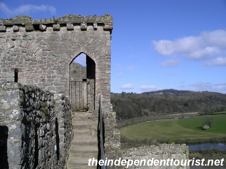 This image shows the Great Tower and how it and the castle walls sit right on the edge of the cliff over the River Wye.