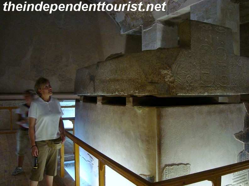It is just about impossible to get meaningful pictures in the Valley of the Kings since photos aren’t allowed in the tombs and the exteriors are just dark entrance ways with signage. However, the tombs themselves are incredible. Many of the tombs are accessed via long corridors going deep into the hillsides, some have chambers in addition to the main tombs. These tombs are carved out of solid rock and the walls and ceilings of most corridors and rooms are highly decorated with beautiful paintings.