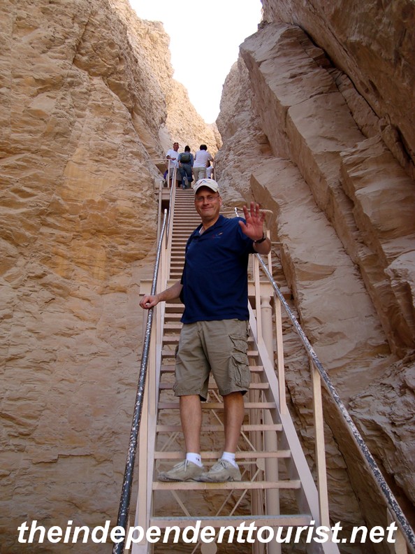 Climbing up to the Tomb of Tuthmosis III – the tomb was dug 100 feet above the valley floor in an attempt to keep thieves out (didn’t work!).