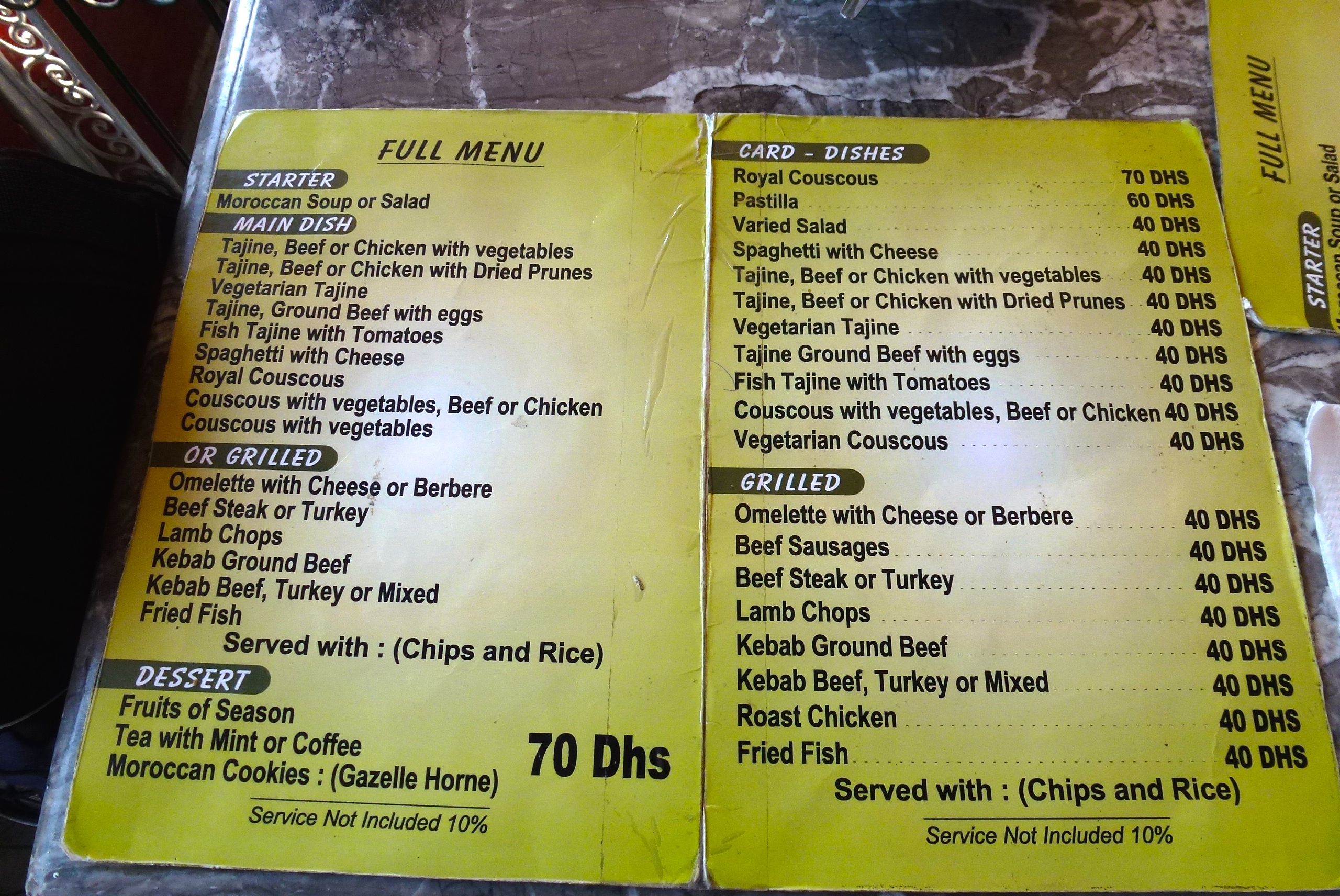 Typical Moroccan menu.