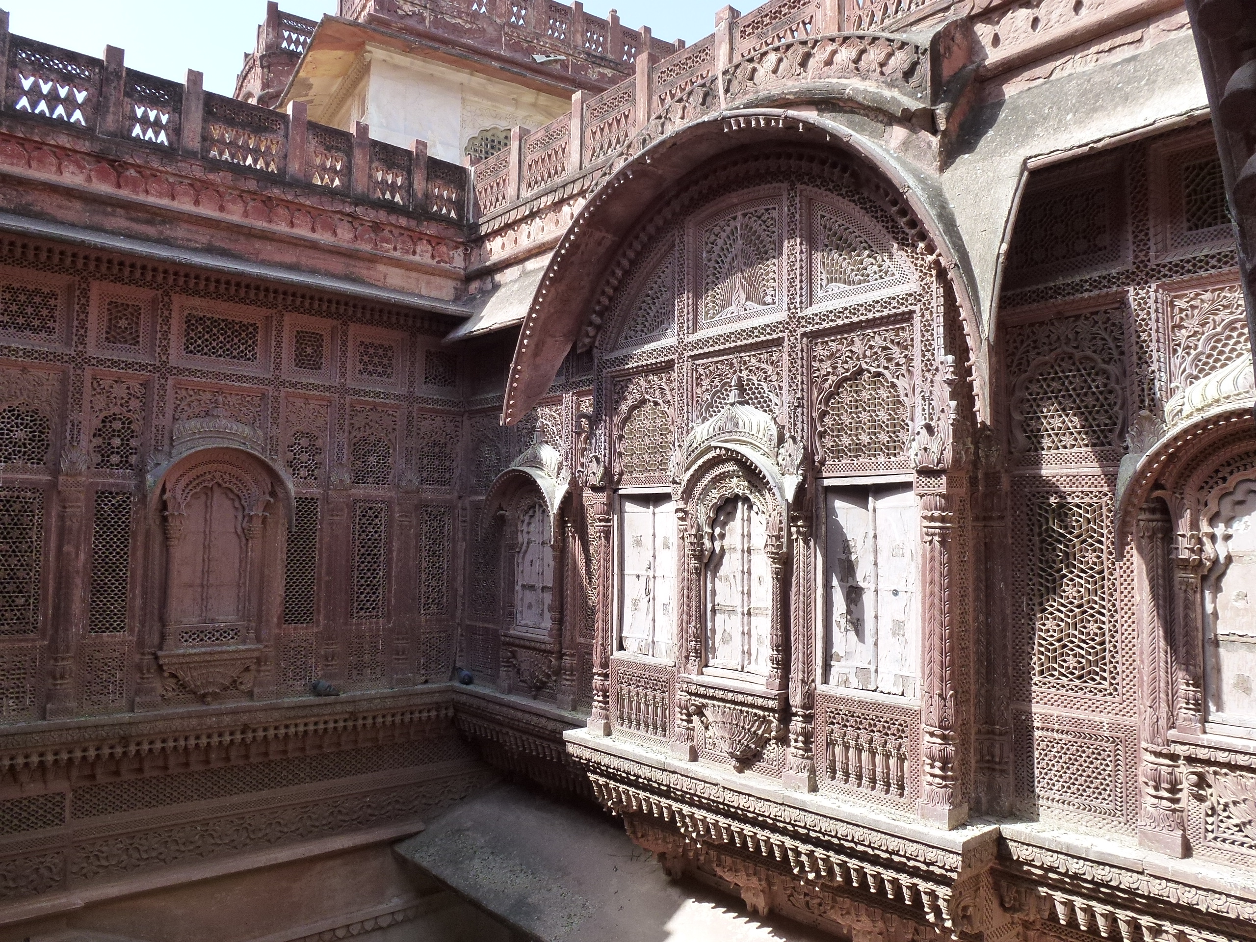 The fort dates from the 16th century, and contains palace rooms with numerous intricate lattice stone carvings; ladies of the court could view the activities of the fort’s daily life without being seen.