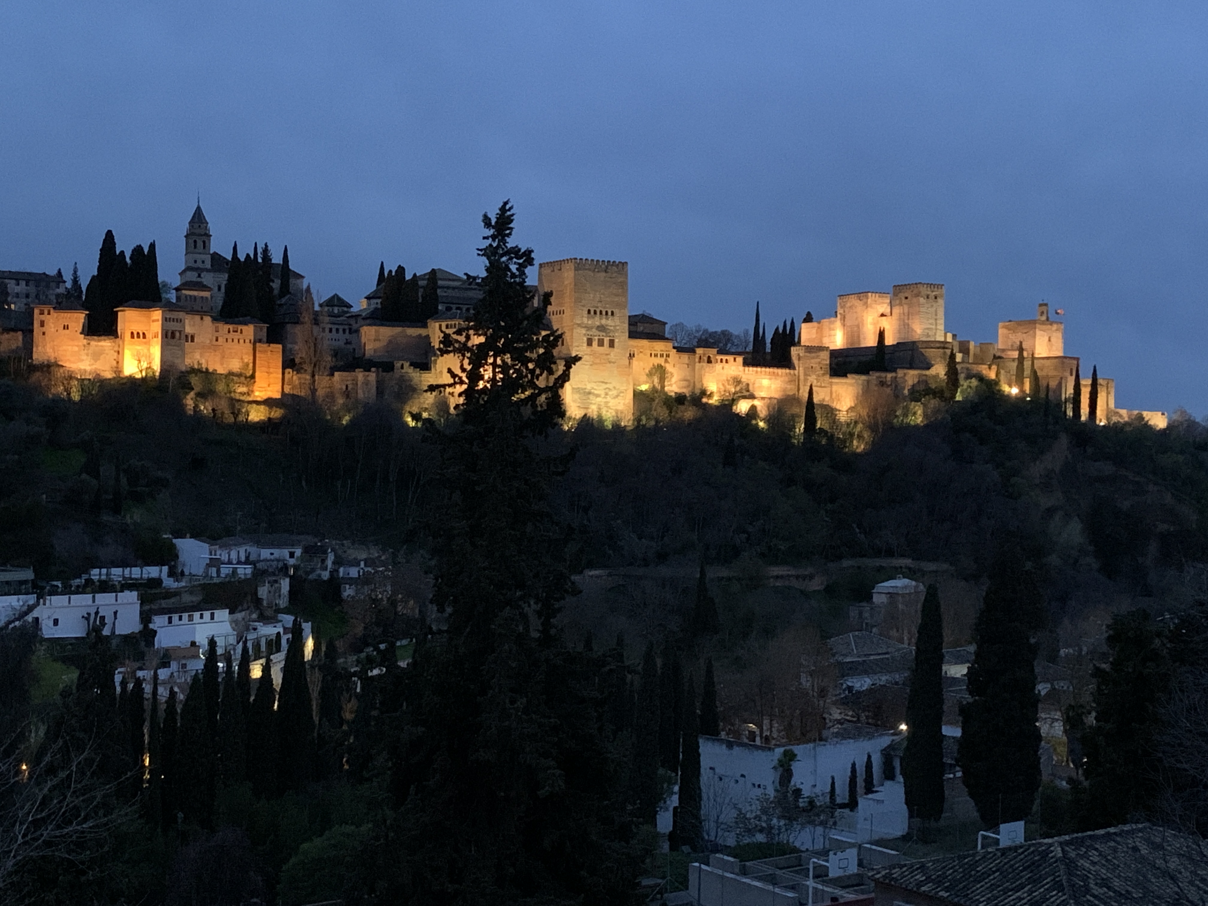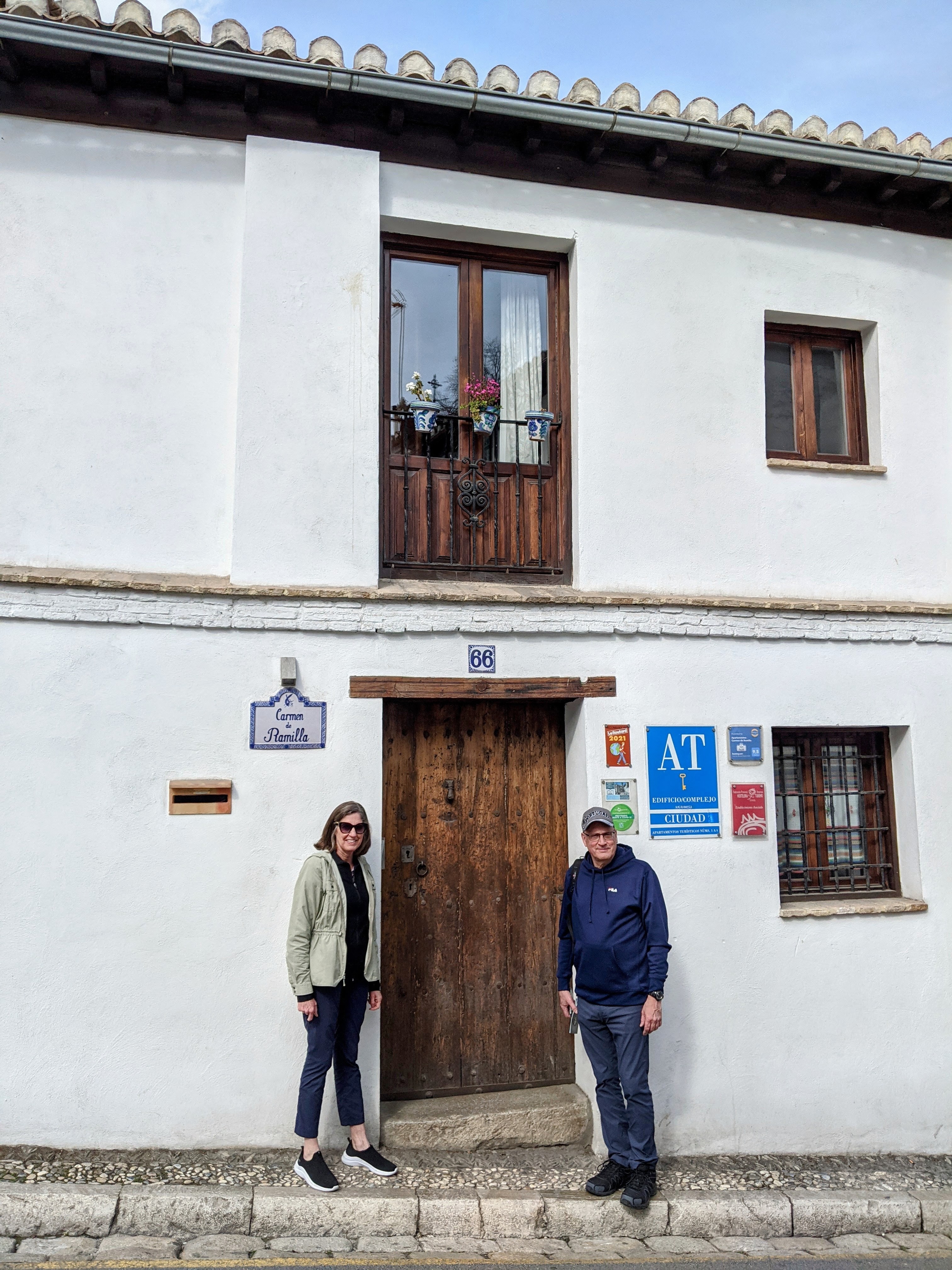We arrived in Granada in mid-afternoon and found our way to our apartment, located in the historic (and hilly) Albaicín (also Albayzín) district, just across a large ravine from the Alhambra. Luckily our apartment had a designated space in a parking garage just a couple blocks away. Parking space is at a premium in this old, charming district.