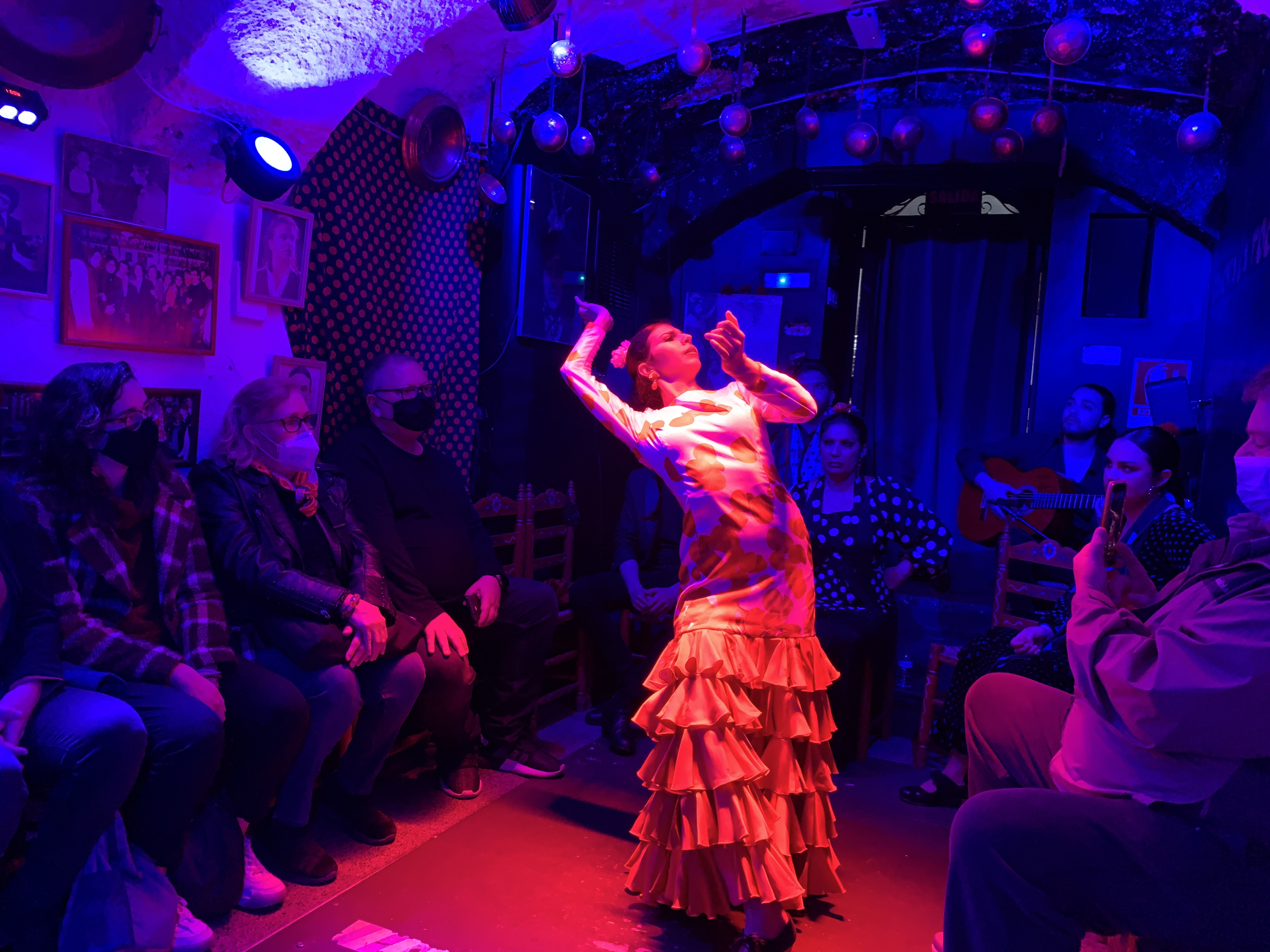One of the things the Albaicín area of Granada is known for are the flamenco dance shows, many of which are performed in little hillside caves that are part of the restaurants and bars in this areas of town, just across the ravine from the Alhambra. The flamenco art form, in which the dancer creates their own interpretation, is indigenous to southern Spain.