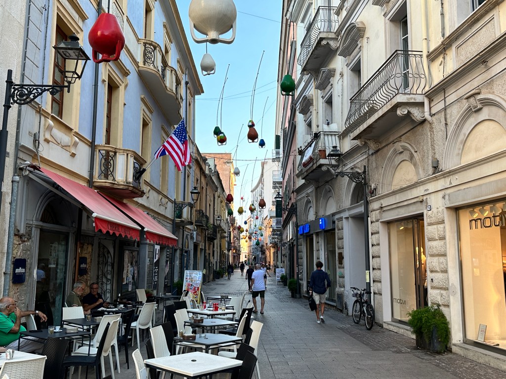 Oristano seemed to us to be a pretty quiet town, without fewer tourists compared to other locations in Sardinia, even though there is much for the tourist to see in the vicinity. We enjoyed walking the streets in the evening without any throngs of tourists. It is a perfect place to call “home” during your stay in this part of Sardinia.