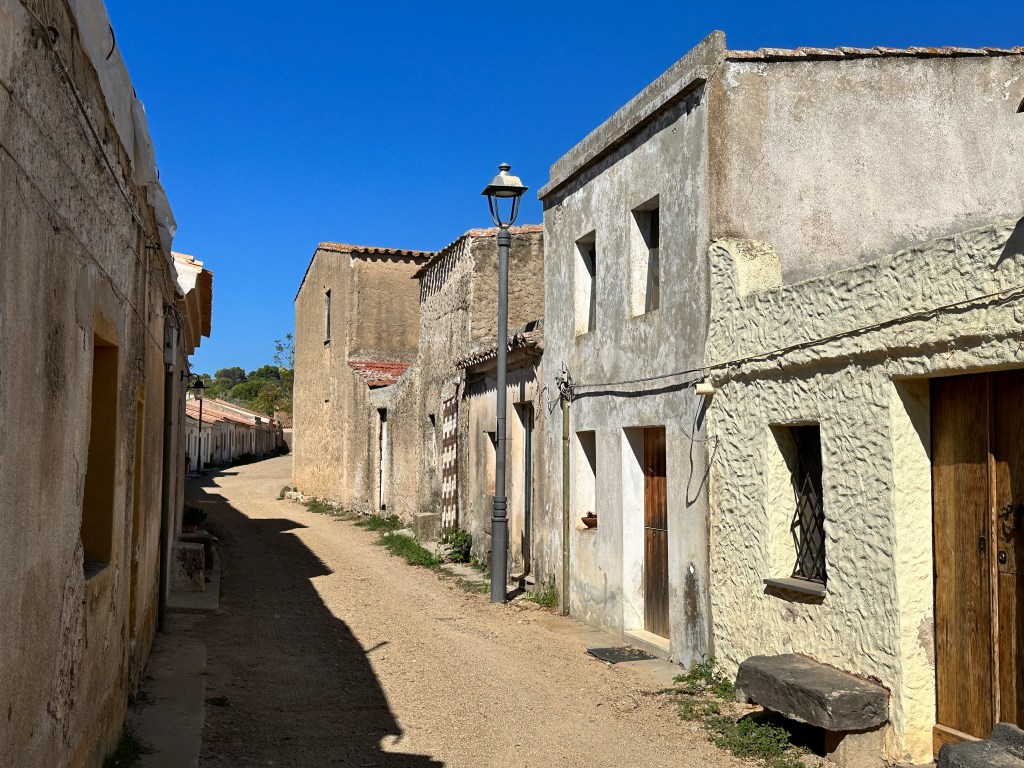 San Salvatore, also close to Tharros, is a spaghetti-western filmset from the 1960’s. It has the feel of a old western U.S. ghost town. The town opens its dwellings’ doors during September each year to house pilgrims for the Festa di San Salvatore, a celebration focused on the village’s small church, which sits over the ruins of a Nuragic period (~1,500 BC) vault. It looked to us like there might be a few permanent residents here, we saw some homes that looked lived in.