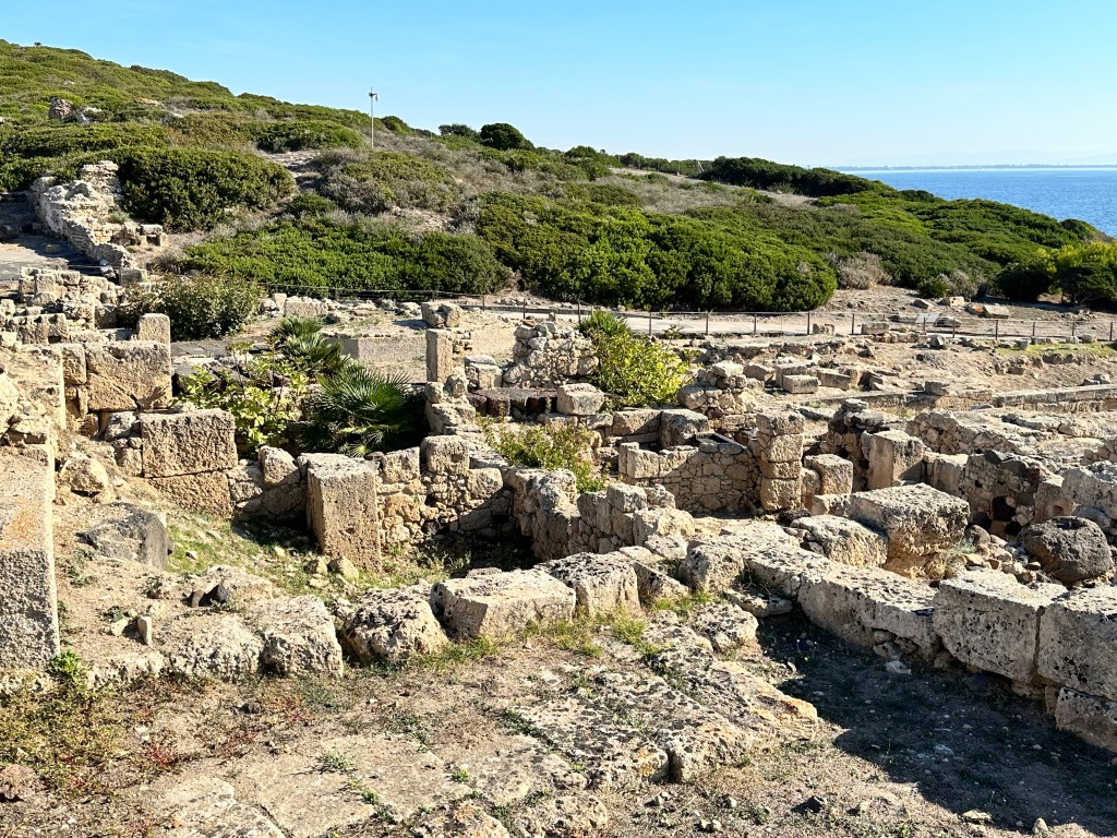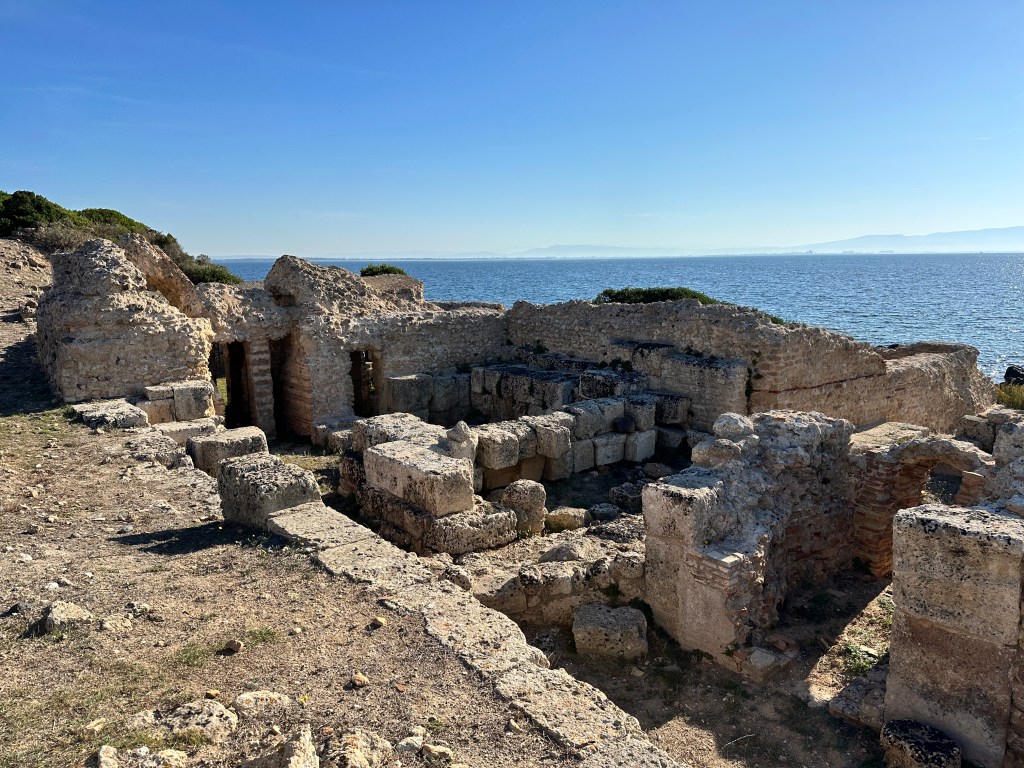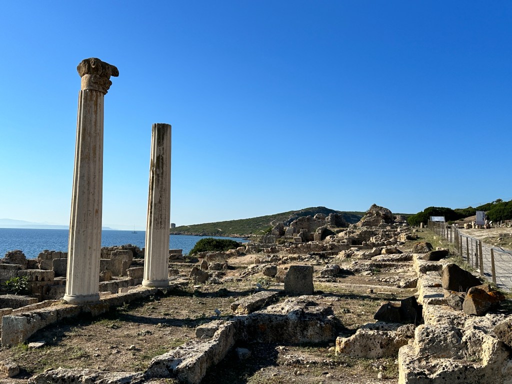 Tharros was occupied for nearly 2,000 years, from the 8th century BC to about 1050 AD. It sits near the end of the Sinis Peninsula, and it’s a spectacular setting.