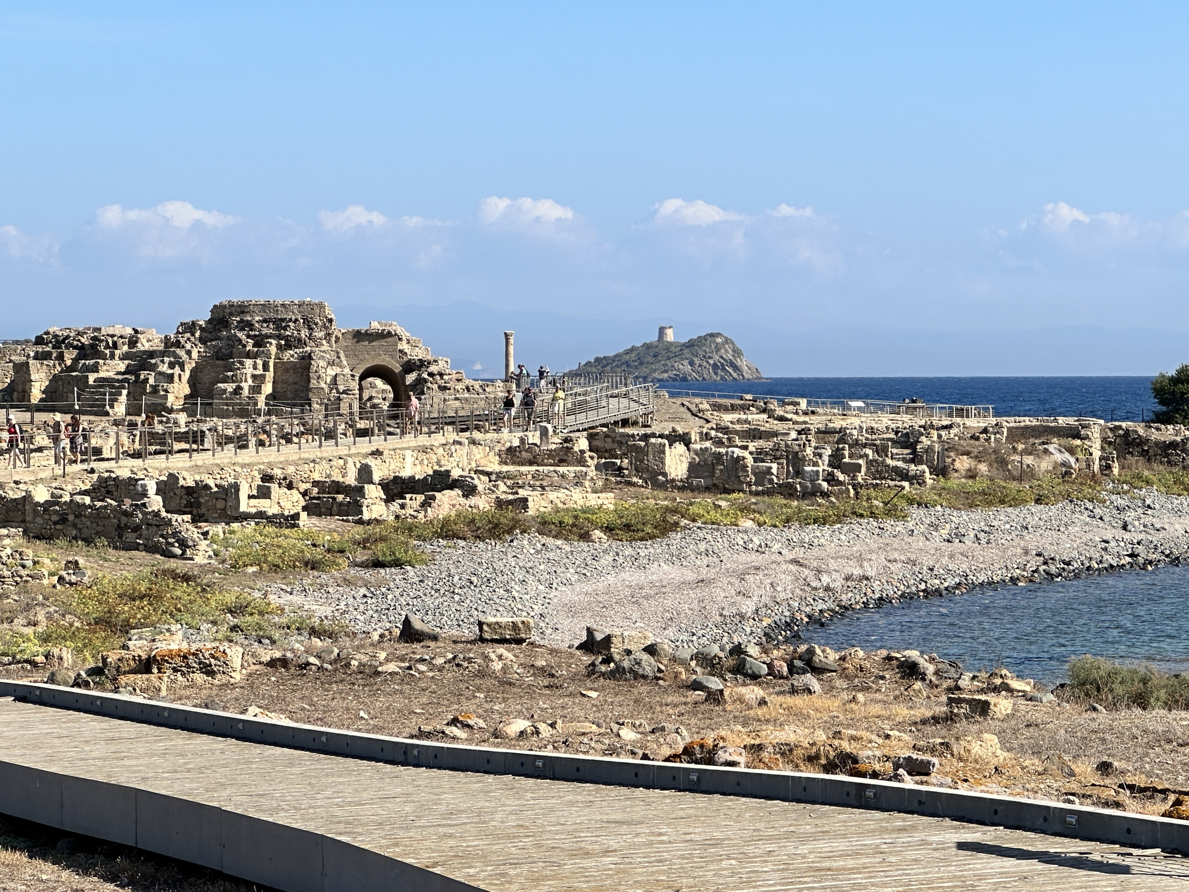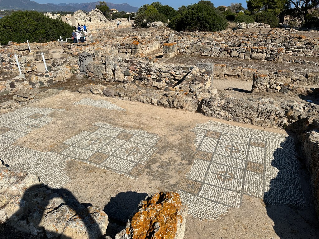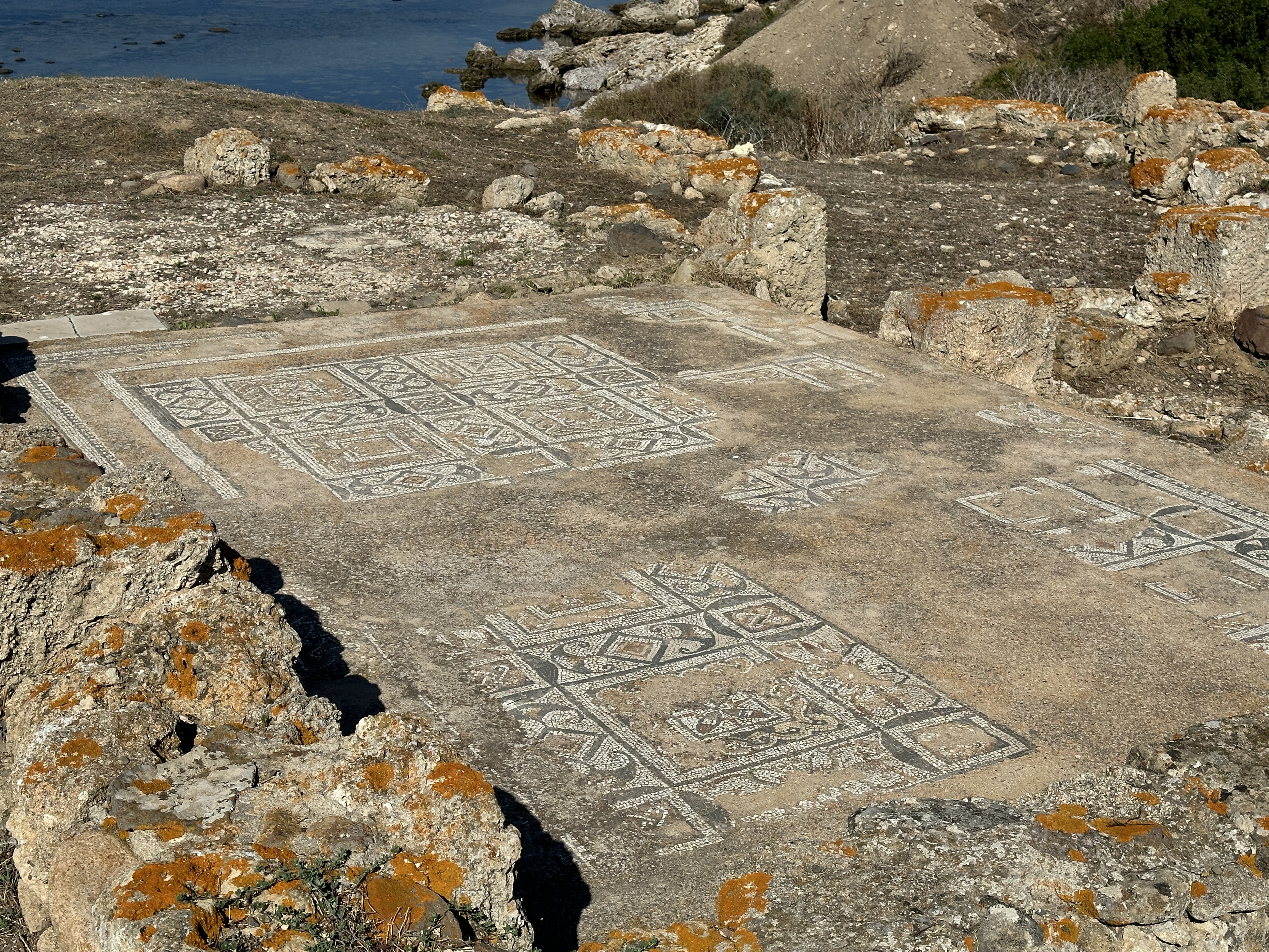 The Nora Archeological Site is only about 45 minutes (48 km or 25 miles) west of Cagliari and makes a nice half-day trip, whether you are staying in town or on a one-day visit with a cruise ship. The origins of the settlement date back to Phoenician times around the 8th century B.C. The city flourished for over four hundred years starting during the first and second centuries B.C. during the Roman age. It must have been quite wealthy due to its ideal position on the coast of Sardinia, perfect for trading. The use of that wealth is demonstrated by the extensive mosaic floors that can still be seen as part of homes and public areas.