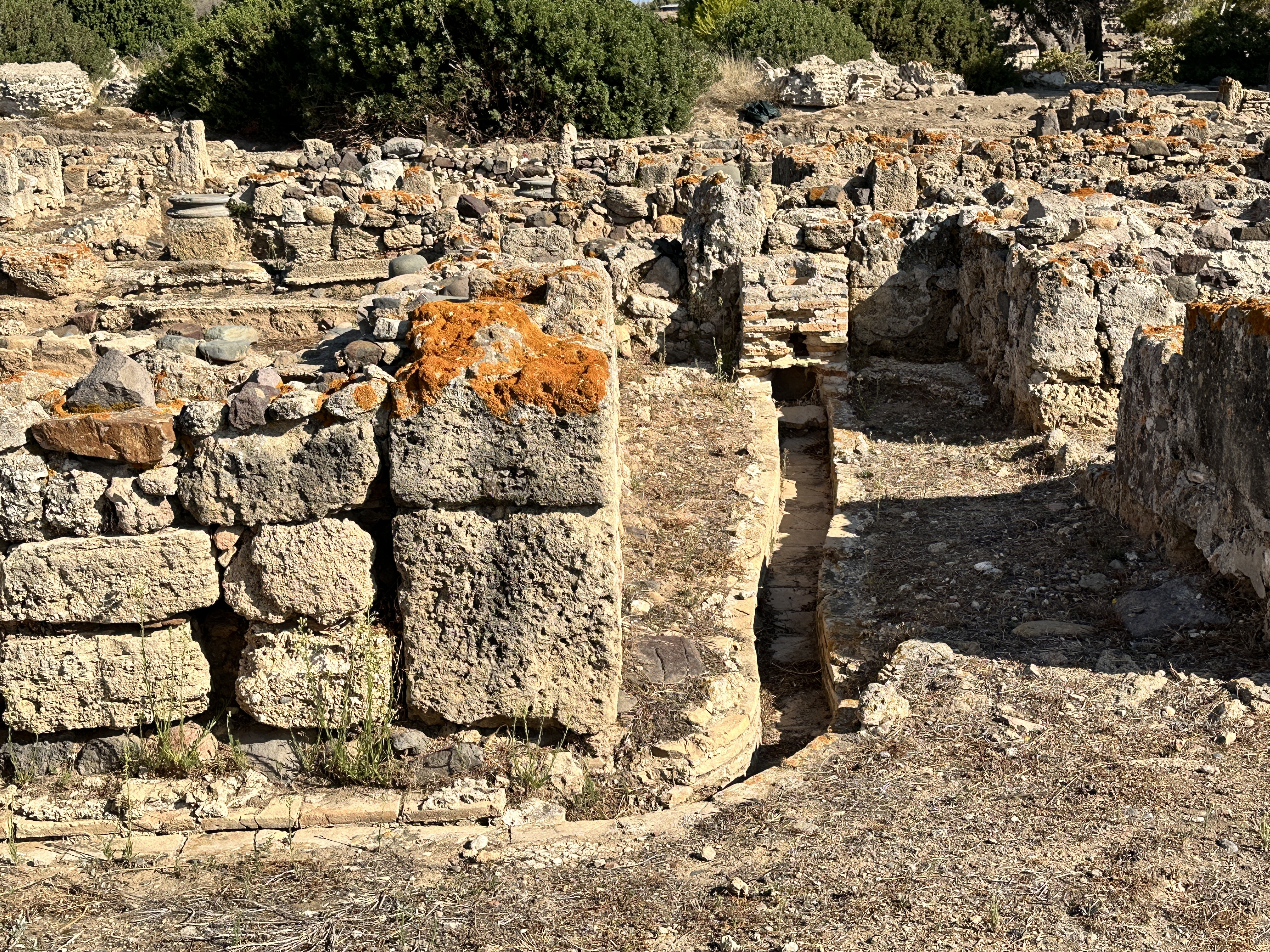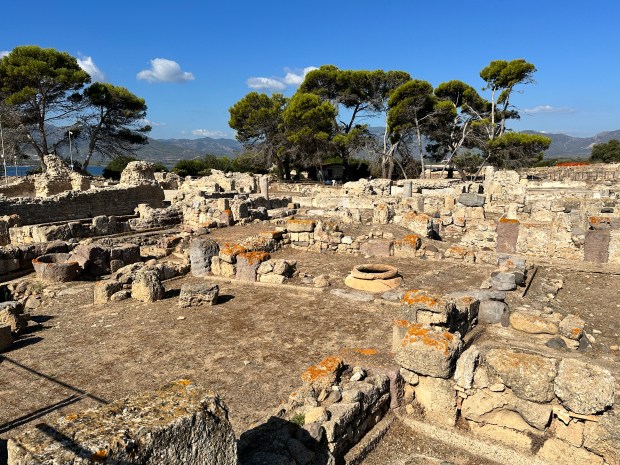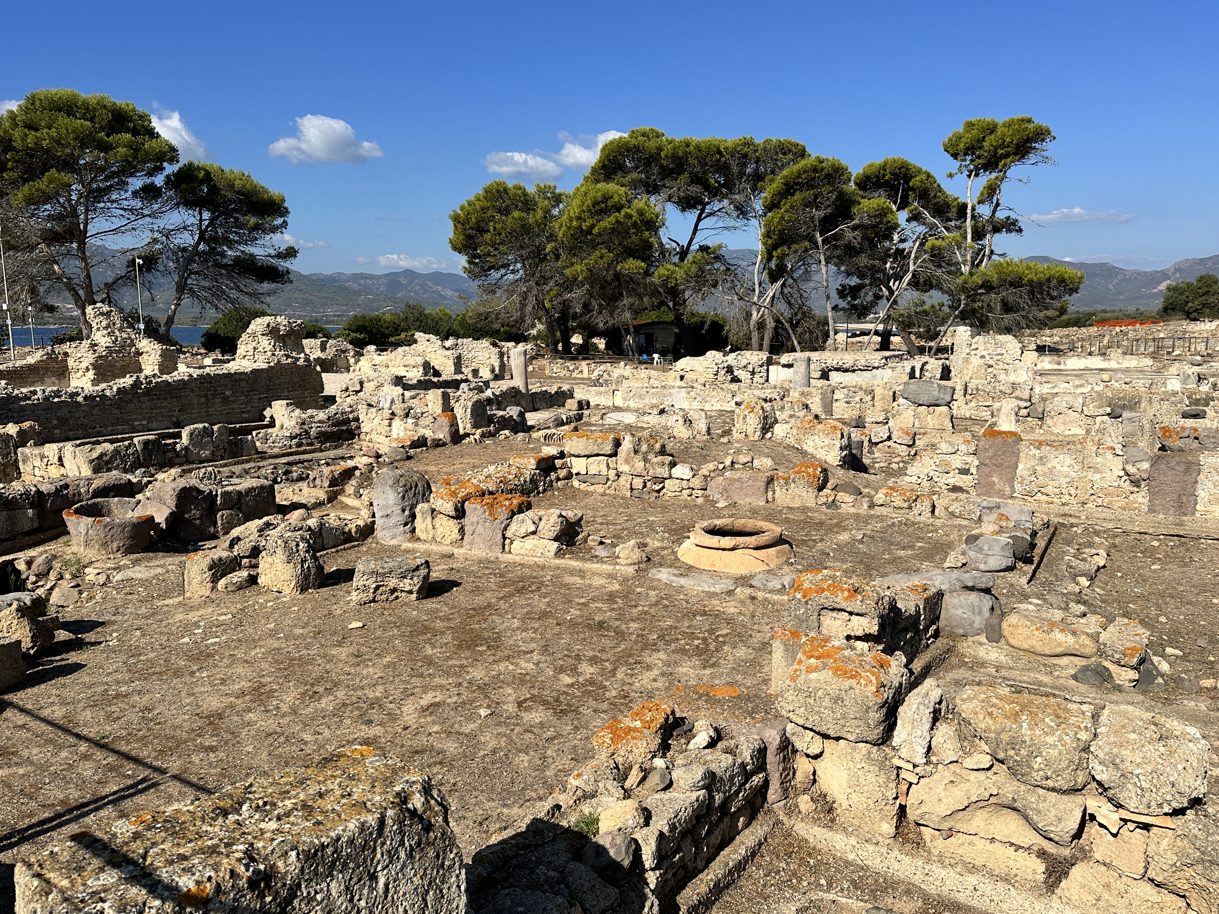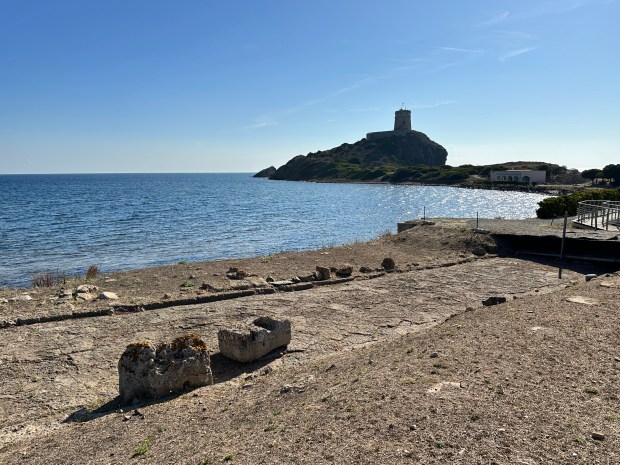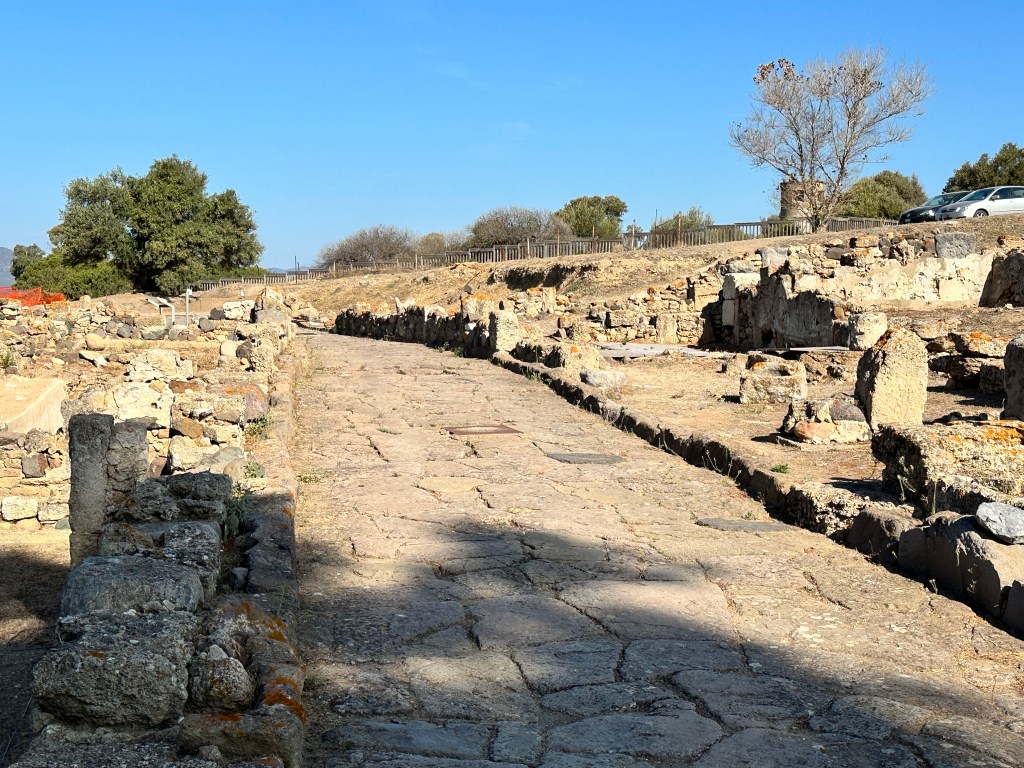 The Nora Archeological Site is only about 45 minutes (48 km or 25 miles) west of Cagliari and makes a nice half-day trip, whether you are staying in town or on a one-day visit with a cruise ship. The origins of the settlement date back to Phoenician times around the 8th century B.C. The city flourished for over four hundred years starting during the first and second centuries B.C. during the Roman age. It must have been quite wealthy due to its ideal position on the coast of Sardinia, perfect for trading. The use of that wealth is demonstrated by the extensive mosaic floors that can still be seen as part of homes and public areas.