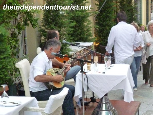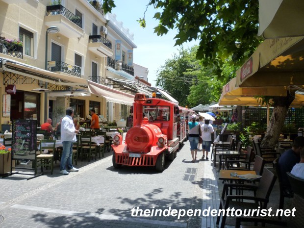 One of the great sights in the world, let alone Greece, is Meteora. The combination of stunning natural scenery—huge sandstone rock pinnacles–with medieval 14th century monasteries sitting on top of them is a sight I will not forget. About 5 hours by car northwest of Athens, Meteora (which is close to the fairly large town of Kalambaka) is well worth the drive, which we did by way of Delphi (about 3.5 hours from Delphi to Meteora). The word Meteora comes from a Greek word which means “to hang in midair” and after seeing this area, it’s easy to see how the word aptly describes the monasteries built on the tops and down the sides of the rocks.