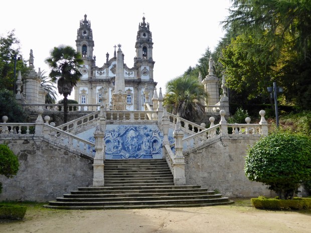 Our primary reason to visit Lamego was to see the Santuário de Nossa Senhora dos Remédios (Our Lady of the Remedies), an 18th century Baroque church which sits on St. Stephen’s Hill (a pilgrimage site), with a fine view of Lamego. This church is on one of the routes pilgrims have taken when traveling to Santiago de Compostela in northwestern Spain. It is known for its beautiful stairways and decorative landings leading up to the church itself.