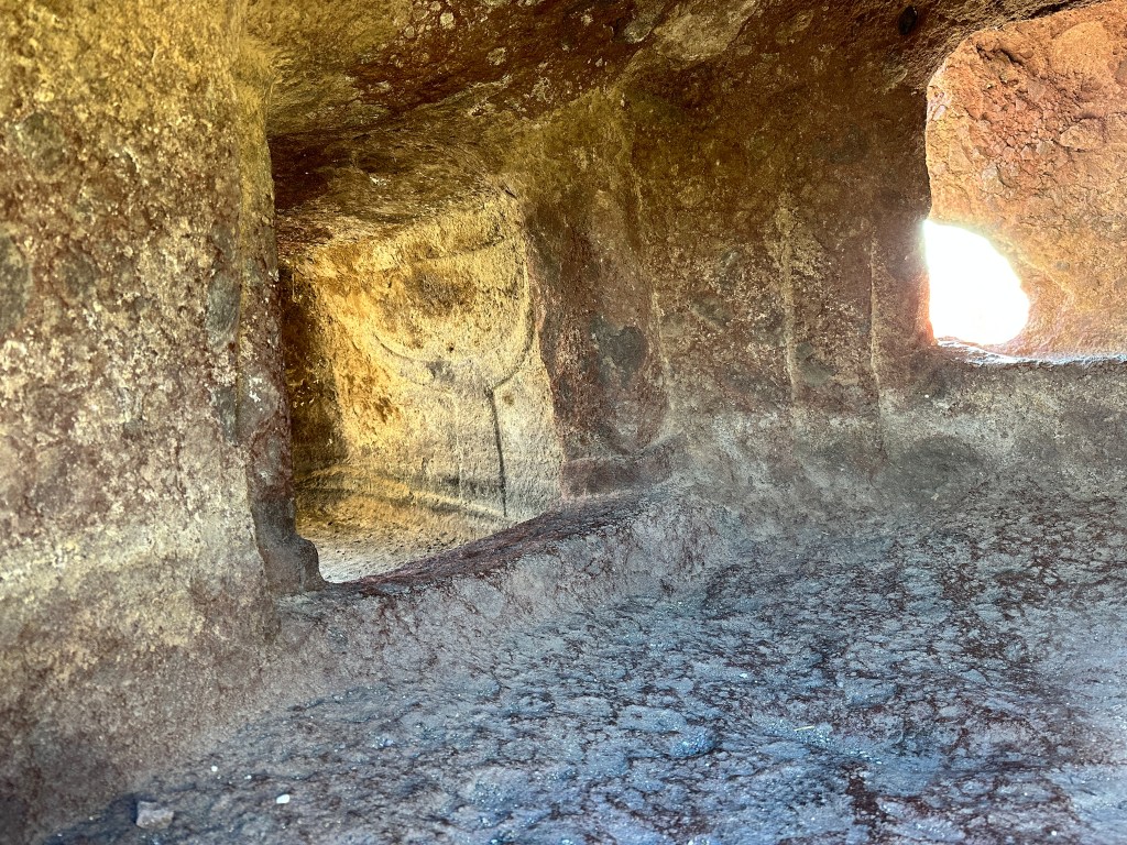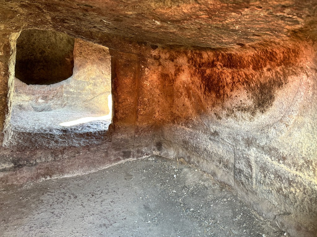 Just off a road leading into Castelsardo from the east is this interesting volcanic rock formation, aptly named “Elephant Rock”. What is even more interesting is that within this rock there are two pre-nuragic tombs, dating to a time before Sardinia’s Nuraghe were built, likely 5,000 or more years ago. We just pulled off the side of the road to take a look.