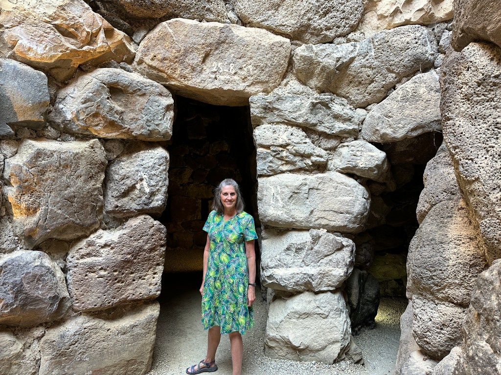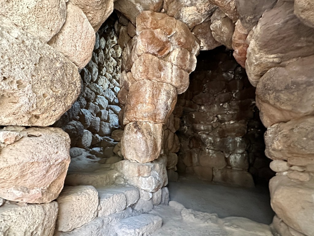 In addition to the glorious beaches of Sardinia, it is certainly worth your time to visit a few of the fascinating archeological sites. Be careful in the structures. Some of the stairway stones are very slick and trust me, it’s easy to slip. Also, watch your head, many of the passageways are short and narrow. The sites we visited were well sign-posted, had parking available and are well-maintained.