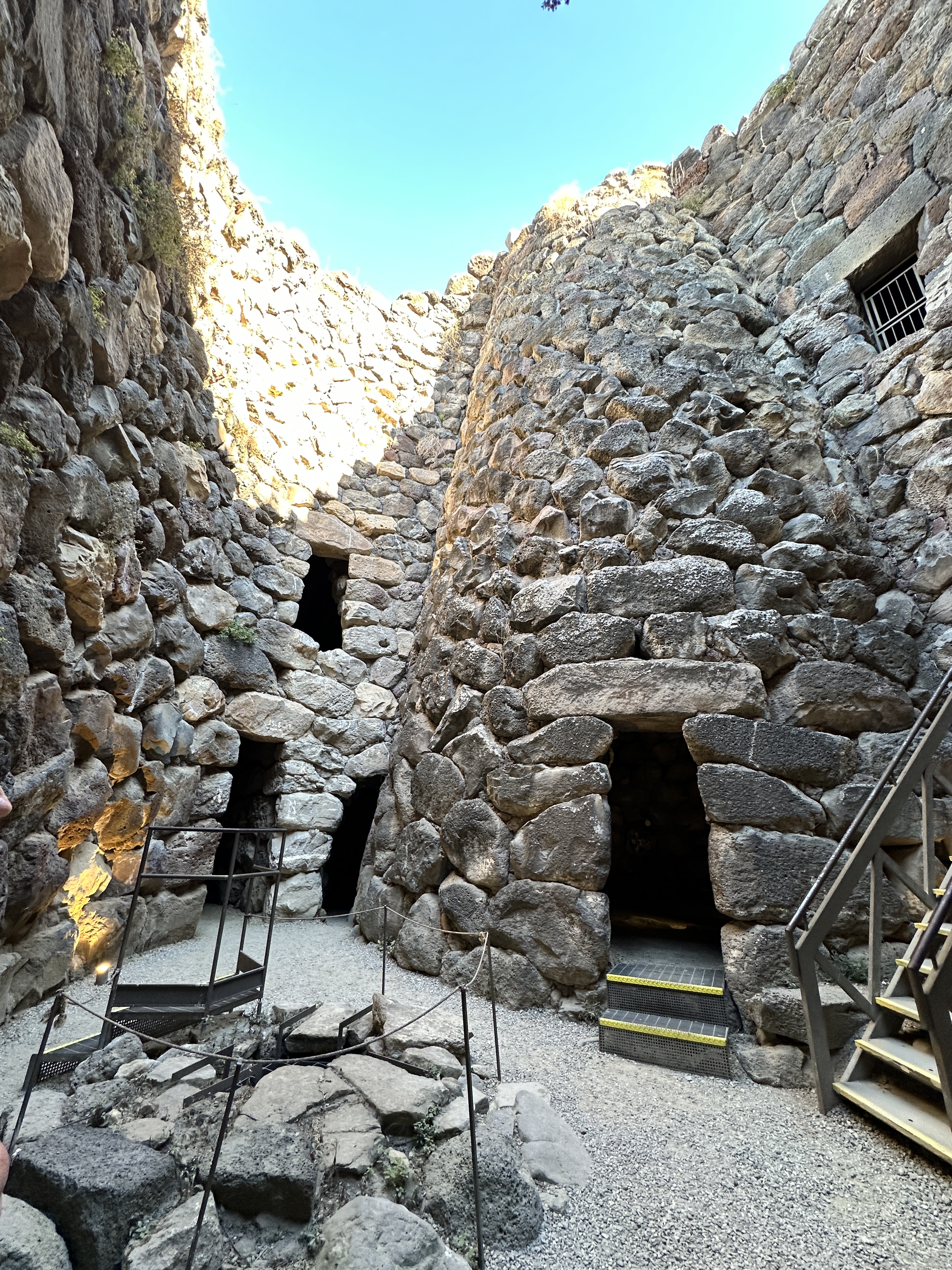 Nuraghe Santu Antine – courtyard views – including a well in the left photo above.Interior views of Nuraghe Santu Antine – tall room, passageway, and stairway to 2nd level.