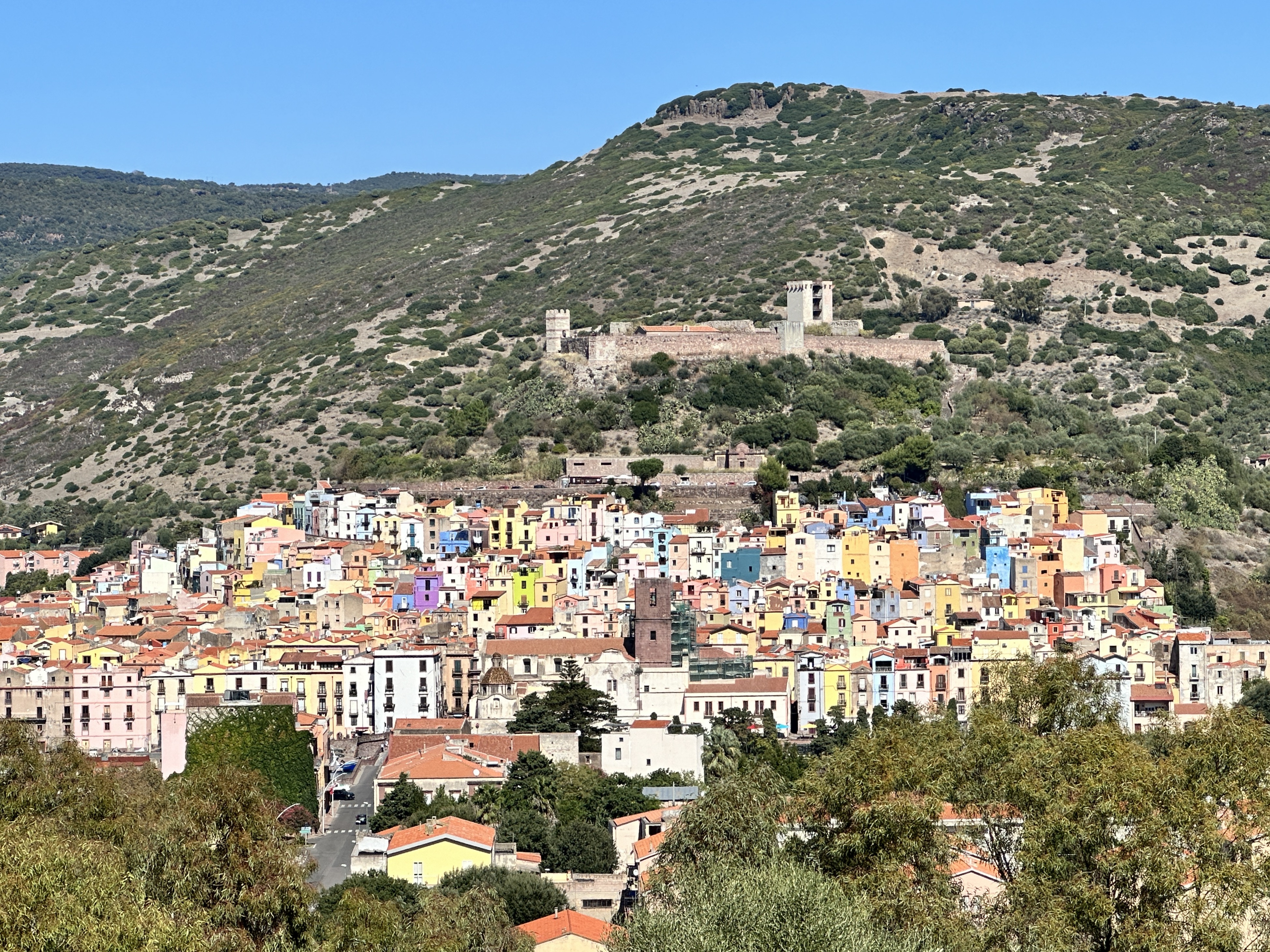 View of Bosa and its 13th century castle as seen from our drive into town.