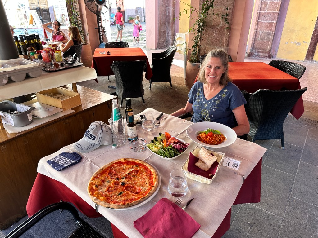 Although an autonomous region, Sardinia is definitely Italian. Some Americans have never heard of Sardinia and really have no idea that it’s part of Italy. The Sards have their own language but of course speak Italian, English, and other European languages quite fluently. It was easy for us to get by on English and a few Italian phrases. The food and gelato are wonderful, as in other regions of Italy.